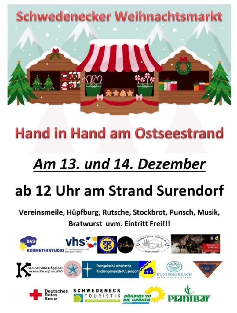 Hand in Hand am Ostseestrand – Schwedenecker Weihnachtsmarkt am 13./14. Dezember 2025 18. November 2025 Auch wir von Bündnis 90 / Die Grünen OV Schwedeneck sind dabei. Ihr auch?