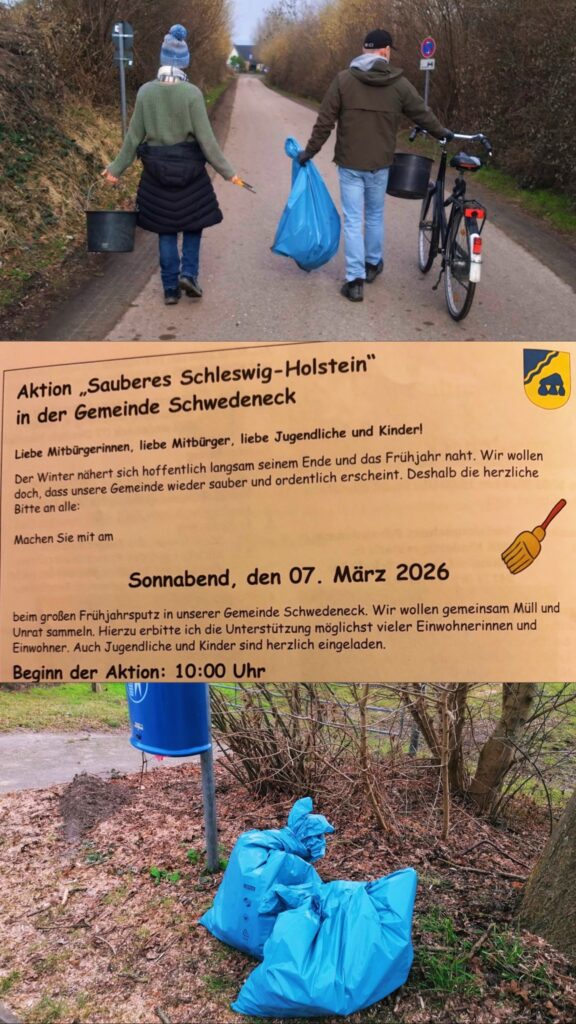 Wie in jedem Jahr zum Ende des Winters ging es am 7. März 2026 es an den Frühjahrsputz in der Gemeinde Schwedeneck. Und so haben wir Grüne-Schwedeneck uns gerne an der Aktion beteiligt. Eine kleine Stärkung wurde zum Abschluss im STS Sportheim in Surendorf geboten.